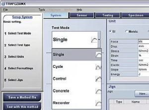 Le logiciel est utilisé pour tester le béton (essais de compression, de flexion et de clivage). Il permet de réaliser des tests conformes aux normes JIS A1108, JIS A1106 et JIS A1113.