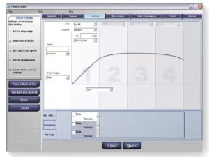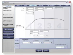 Ce logiciel permet de créer librement une routine de mouvement de la machine d’essai spécifiée par l’utilisateur. Il permet de configurer des combinaisons complexes d’étapes de traction, de compression et de maintien.